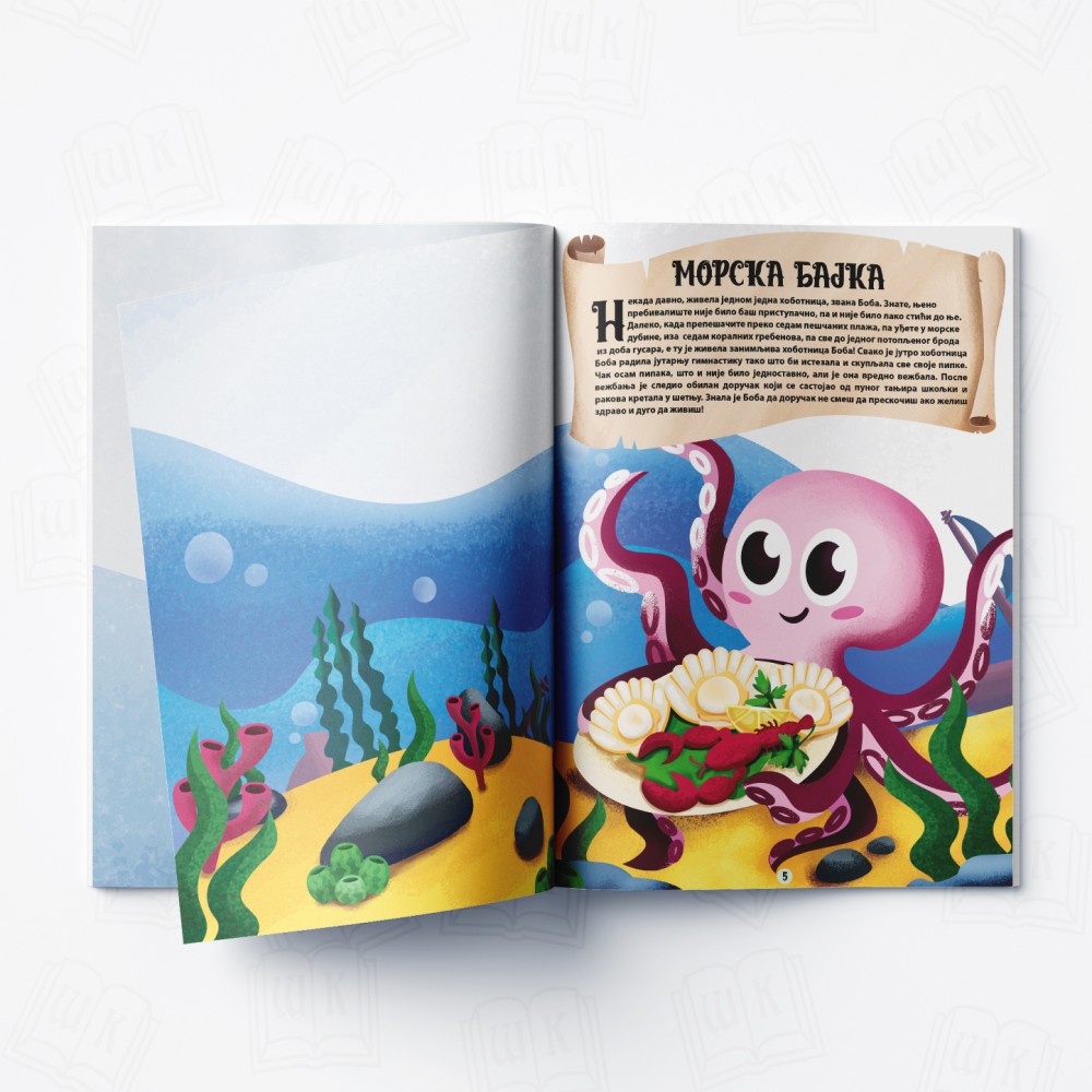 првој причи, МОРСКА БАЈКА, читаоци се упознају са хоботницом Бобом и